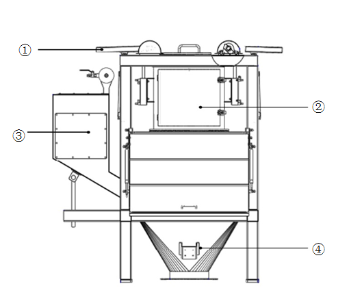①拍打裝置 ②受料倉組件 ③收塵組件 ④投料站倉體